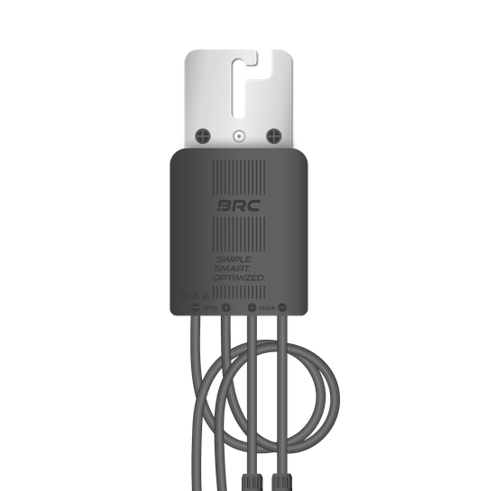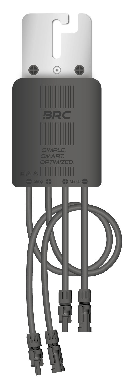 The solution is the Power Optimizer M600-E On the affected modules, the BRC optimiser increases the current to the level of the unaffected modules by reducing the voltage in the same ratio. The remaining modules marked in green above are no longer slowed down and the energy of the affected modules is utilised. Hot spot formation is avoided and the maximum yield is achieved. This means that the entire roof area can be optimally utilised.